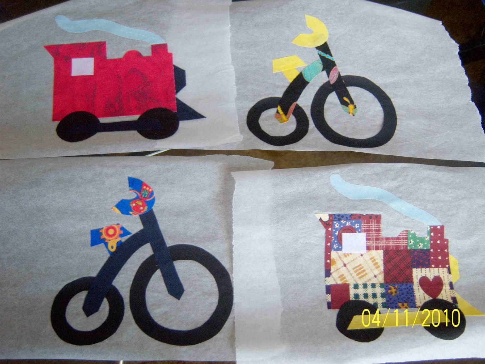 Now they have to be placed on calico backgrounds, stitched and then the quilt can get going.